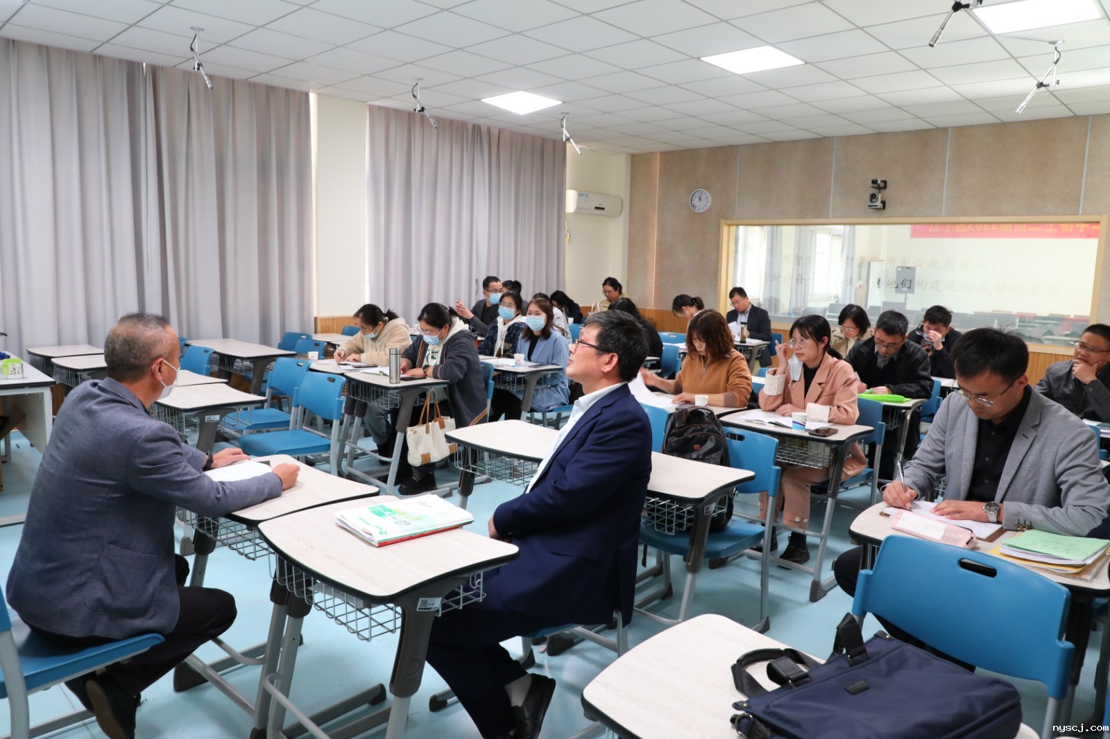 2022年10月18日江宁区高三化学一轮复习推进会在我校举行,江宁区全体高三化学教师前来学习交流。