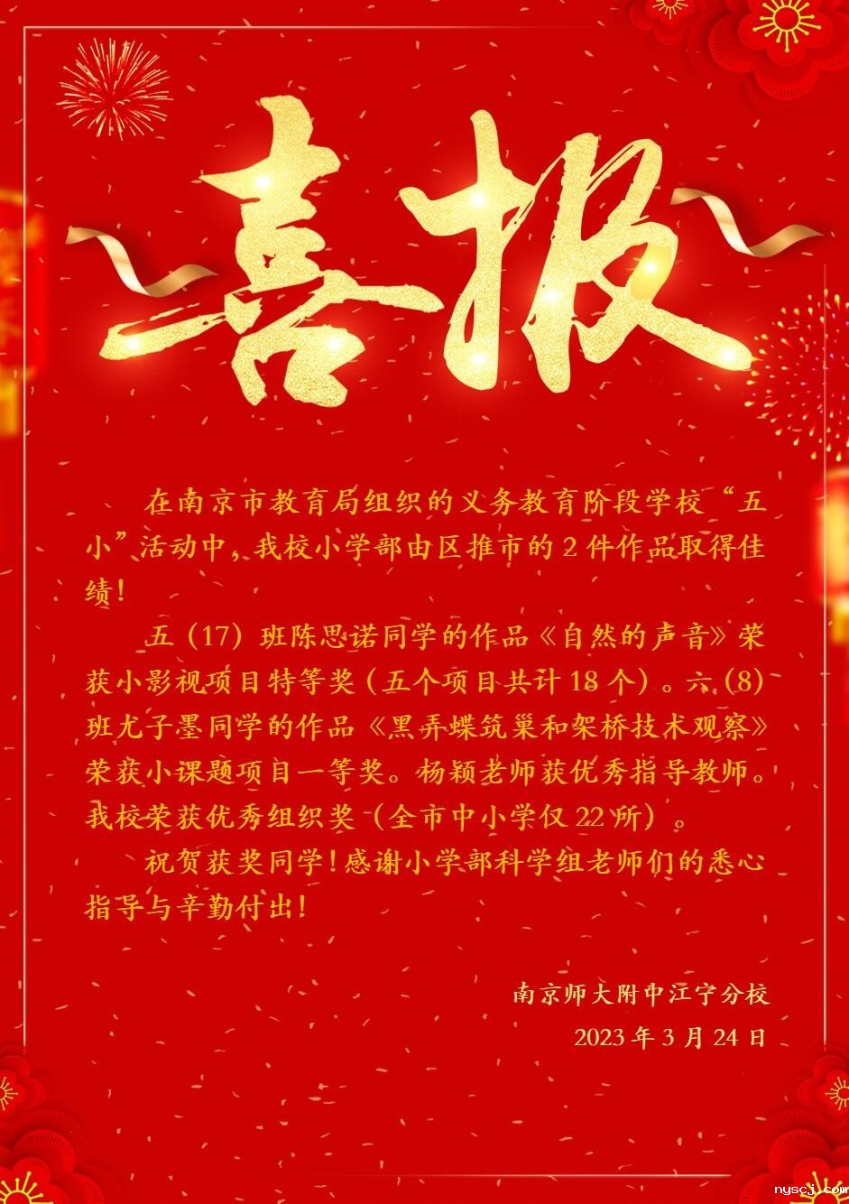 【喜报】南京市义务教育阶段学校“五小”活动