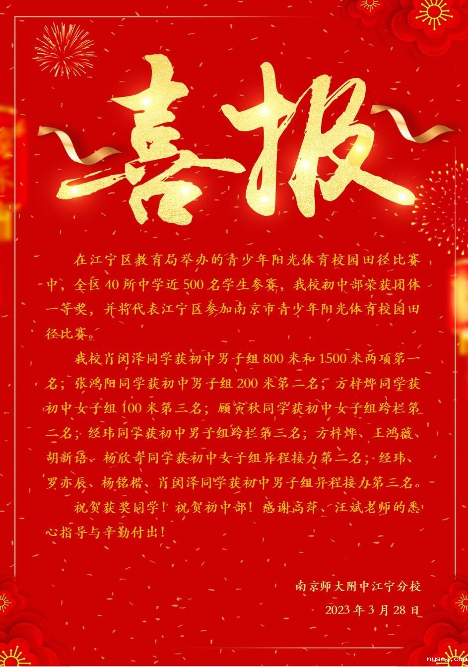 【喜报】江宁区青少年阳光体育校园田径比赛(初中)