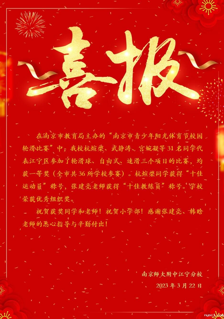 【喜报】南京市青少年阳光体育节校园轮滑比赛