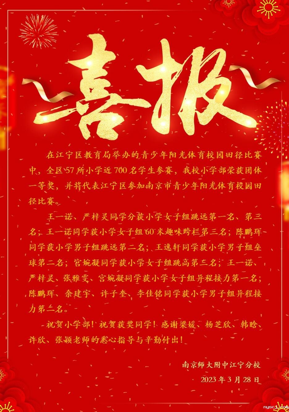 【喜报】江宁区青少年阳光体育校园田径比赛(小学)