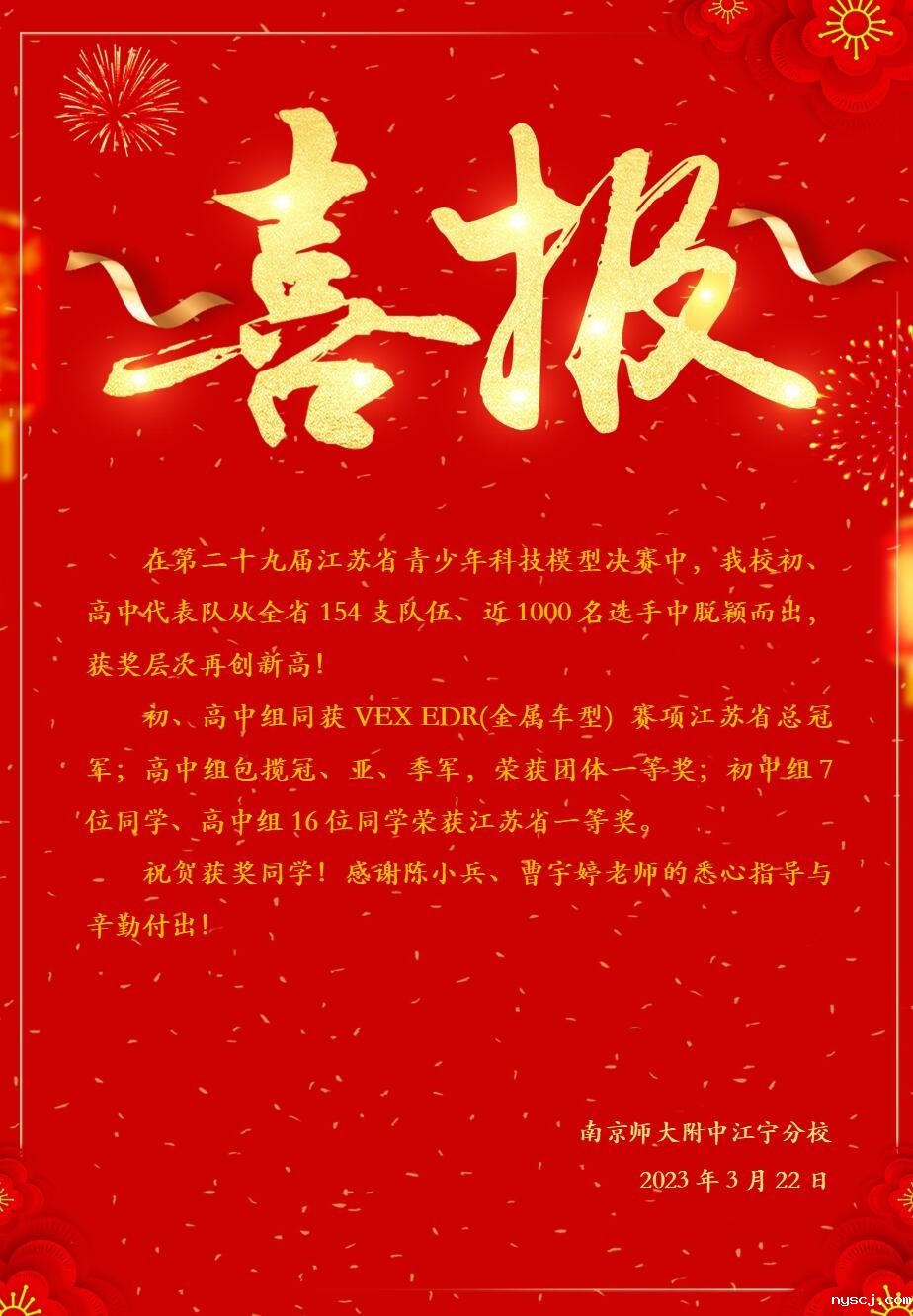 【喜报】第二十九届江苏省青少年科技模型决赛