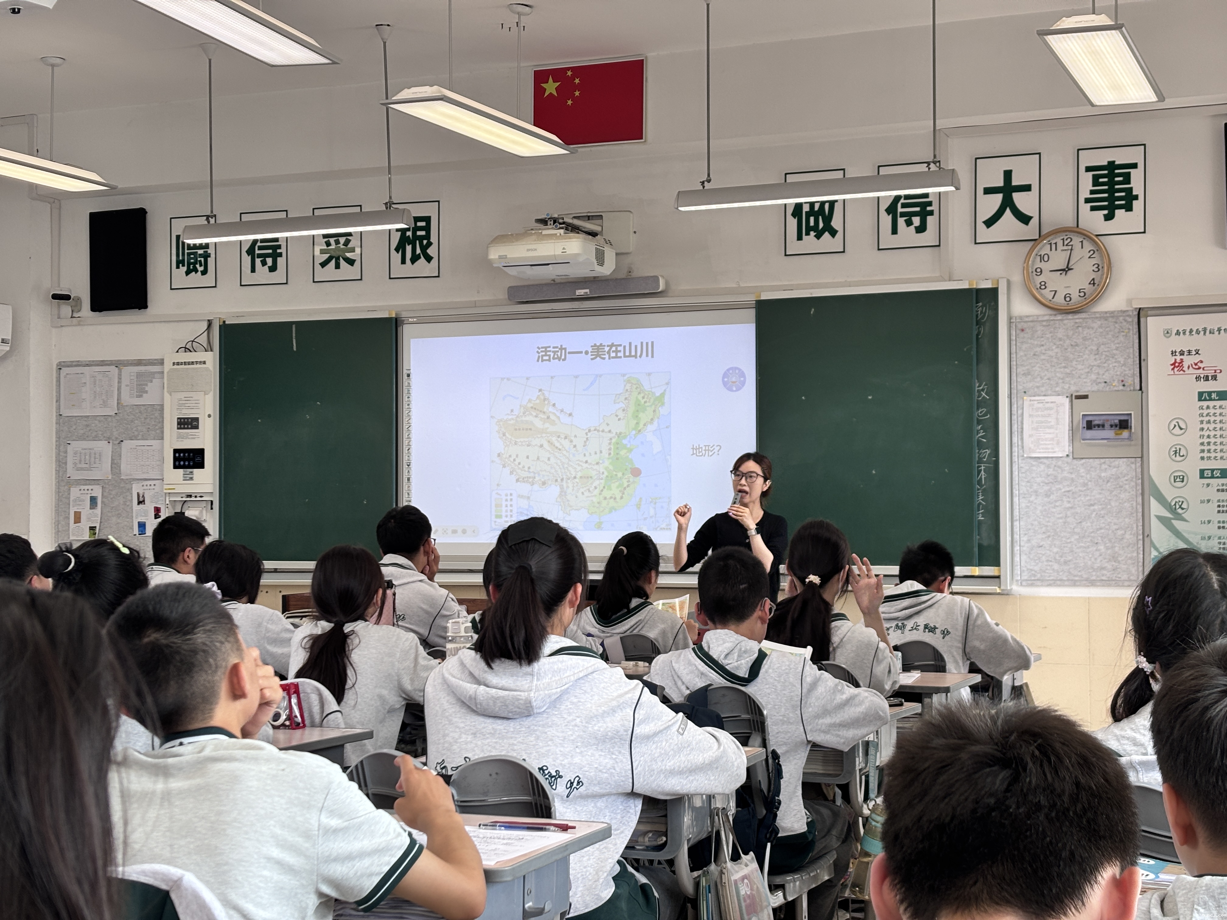 2025年4月30日在初二19班,杨苏苏老师开设了一节以中国的自然环境为主题的复习课,通过丰富的图文资料和趣味互动,带领学生领略自然之美。